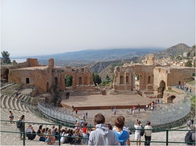 Dans le cadre de l’enseignement du latin et de la spécialité Humanités, littérature et philosophie, un voyage en Sicile a été organisé afin de découvrir la culture hellénique riche d’un patrimoine culturel de plus de 2000 ans d’histoire.Au programme de ce voyage, découverte de : Taormine, Syracuse, l'Île d’ Ortygie, L’Etna, Piazza Armerina.
