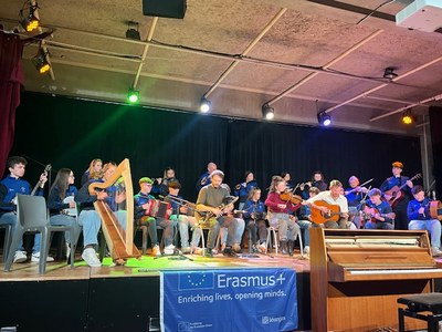 Rencontre Erasmus des lycéens de Colaiste Bhride autour d'un concert de musique traditionnelle Irlansaise .