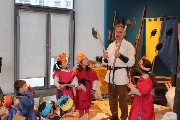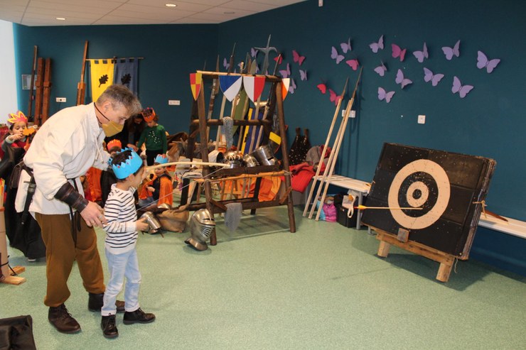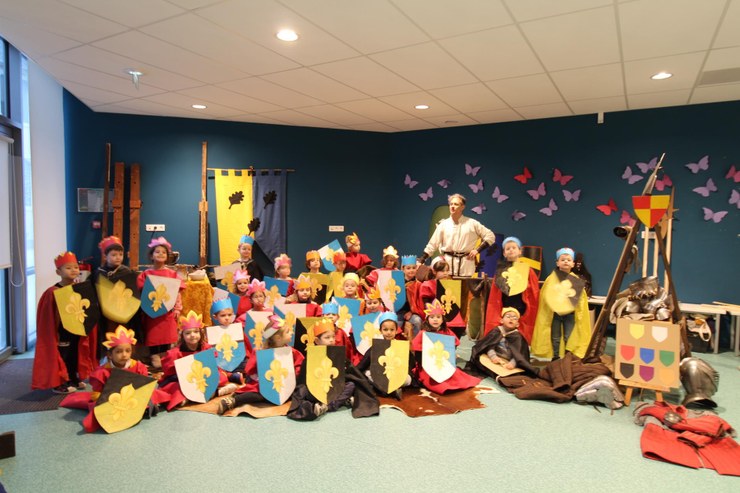 Un cadre temporel est installé en début de journée grâce à un conte médiéval et l'on ne quittera plus cette ambiance de la journée . Une succession de jeux de société, calligraphie, enluminures, décor de vitraux, création de bougies, tir à l'arc...jalonnent la matinée. Les ateliers de l'après-midi plongent les élèves dans un autre monde : chevaliers et princesses dans leur château, adoubement du chevalier, démonstration d'armes...mais il faut bien conclure et revenir en 2021; la transition se fera en costumes,en musique et avec des danses médiévales bien évidemment.