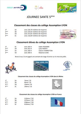Résultats Activité rame 5ème - Journées Santé